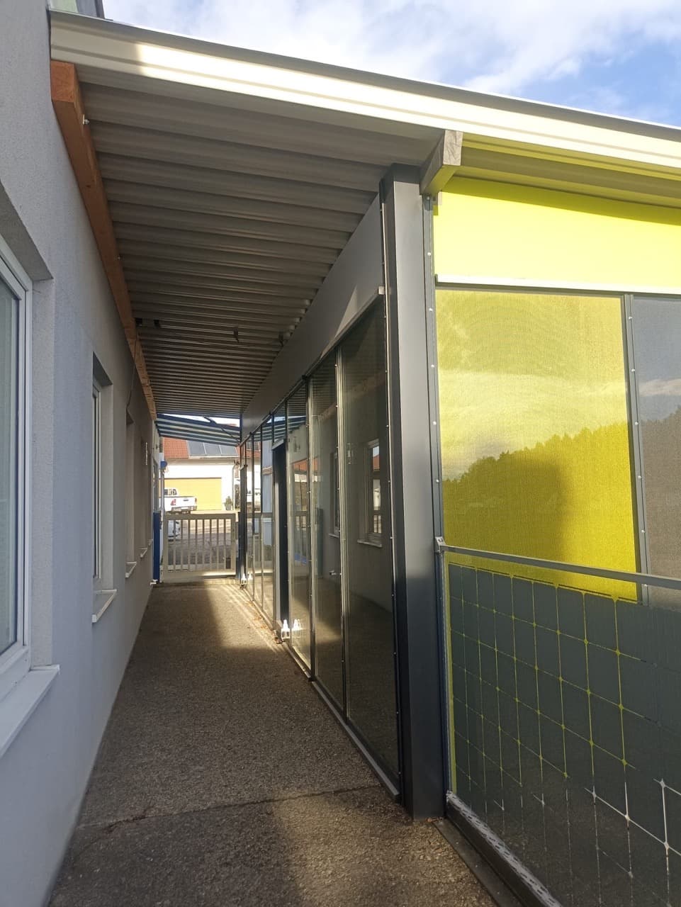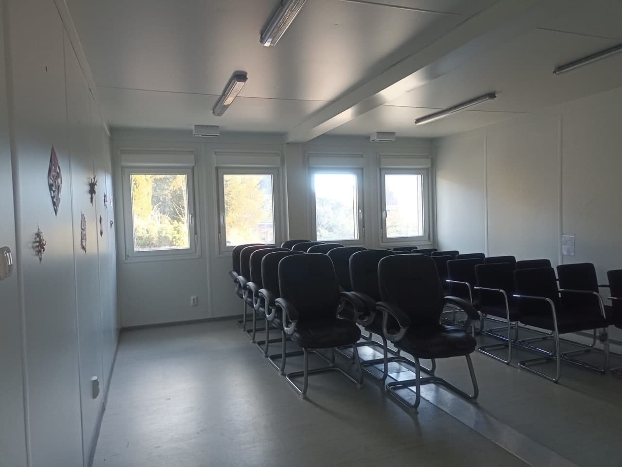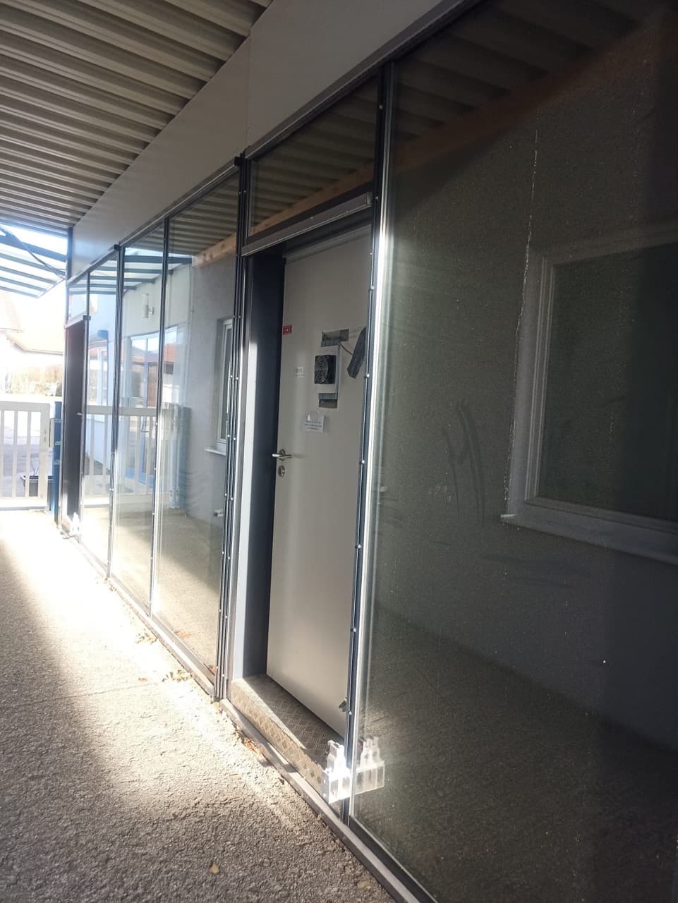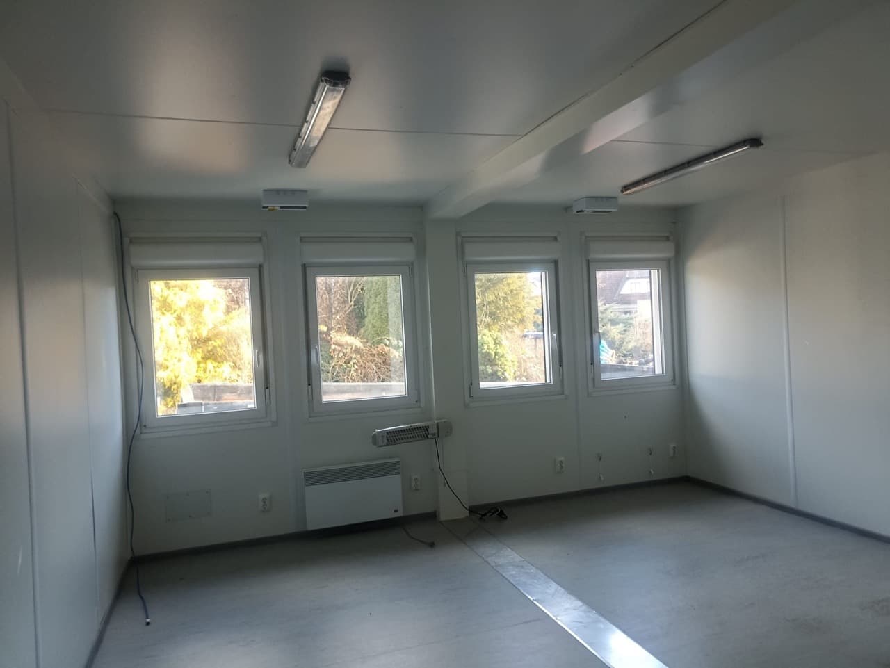 Verkauft wird eine Voll isolierte Bürocontainer Einheit mit 2 Räumen (2x ca. 27 m2), bestehend aus insgesamt 4 Containerhälften (jeweils 2 Container ergeben einen Raum), Dach aus Trapezprofilen (Tragschalen), die Fassade ist eine energietechnisch optimierte Glasfassade.